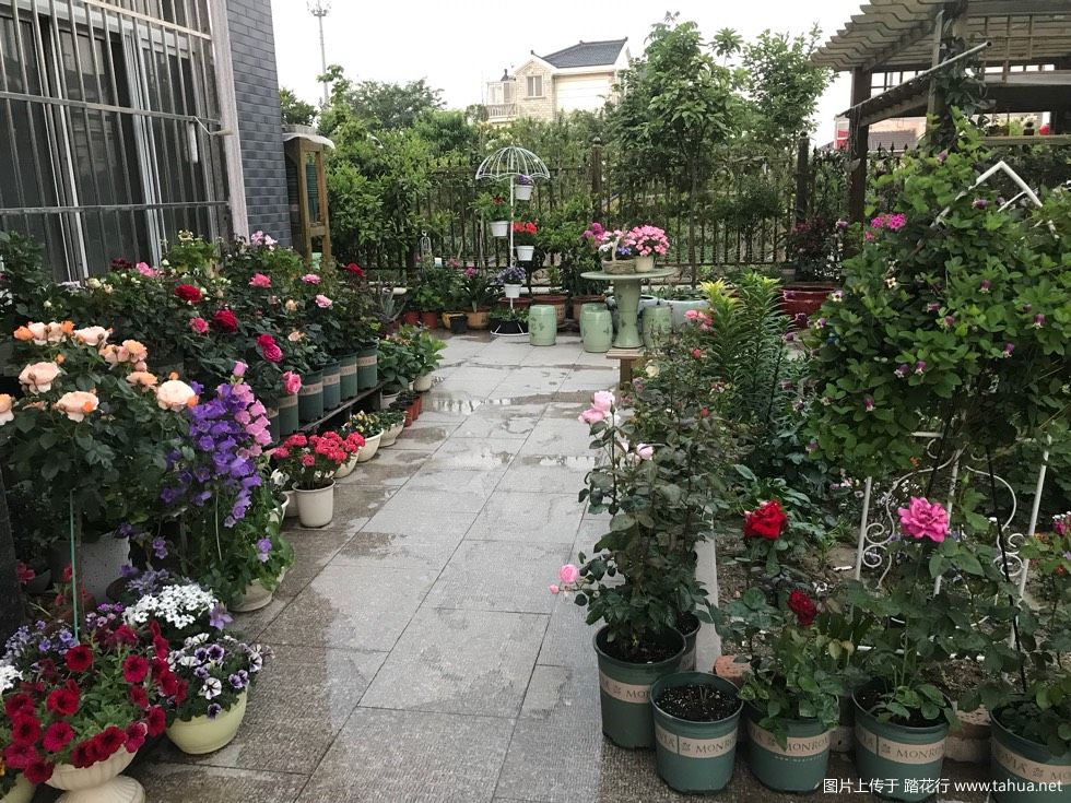 小院刚建成时本意想打造成那种田园式的小花园,奈何一是自己在家时间不多,二是扭不过家中老人。因为是农村,这边人的习惯就是把房屋一圈地面抬高全部硬化,觉得这样干净,一根草都长不出来。左邻右舍全这样,而且地面都会抬高很多,这边又有风水一说,一起的房子都要一样高低,地面也是,哪家如果高了就会占了低的人家的好风水,大家都不会同意,所以老爸,老妈也不愿意自动把我家的放低了去,坚决要和邻居们一样,无奈只能折中让他们在围墙边给留了一条花坛,种上几颗果树。三年前,我有了较多的回家时间,然后就开始慢慢重拾我的小花园梦想,由于全部是硬化地面,所以只能是盆栽。慢慢的摸索。三年间不断的购买新品种,又不断的淘汰不适合盆栽的品种,买土,买盆,搭花架不断的折腾。光秃秃的小院慢慢丰满了起来。虽然还做不到景致错落有致,一步一景。但至少可以做到一年四季花开不断。